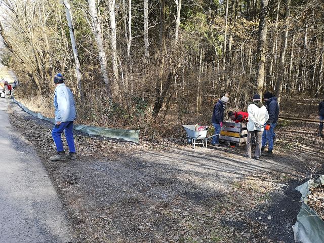 Die fleißigen Mitglieder der Berg& Naturwacht Bad Radkersburg haben auch dieses Jahr einen Amphibienzaun entlang des Pöltener Angelteiches an einer Gemeindestraße errichtet. Über 400 Meter wurden aufgestellt. Ortsleiterin Uschi Radkowitz und ihre Leute haben von der Gemeinde Klöch dafür einen Traktor mit Streusand zur Verfügung gestellt bekommen. Unterstützung gab es auch von Beziksnaturschutzbeauftragten Hans Pfeiler und NATURA2000 Gebietsbetreuer Andreas Breuss.