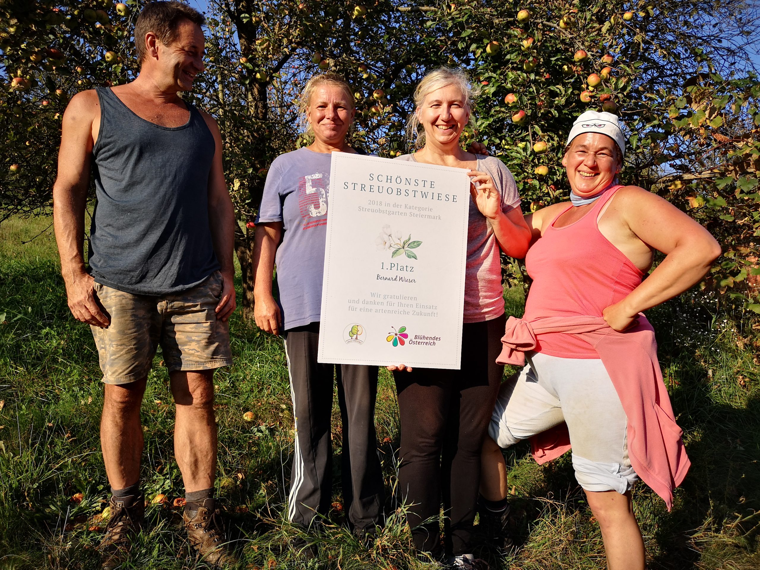 Im Rahmen der Aktion Blühendes Österreichs haben wir mit unseren Streuobstgärten an einem Wettbewerb teilgenommen und sofort den 1. Preis abgeräumt. Zusammen mit Familie Puff aus Frutten-Gießelsdorf, den Fruttner Korbflechtern, gehörten wir in der Kategorie schönster Streuobstgarten mit 90 Punkten zum Österreichischen Spitzenfeld. Auch die Burgenlandsieger kamen mit der Familie Lindl aus Kalchberg. Gesichtspunkte bei der Vergabe der Punkte waren: Sortenvielfalt, Biodiversität im Garten, Pflegezustand in Abstimmung mit Biotopholz, Vermarktung der eigenen Produkte, Empathie für den eigenen Garten.