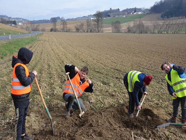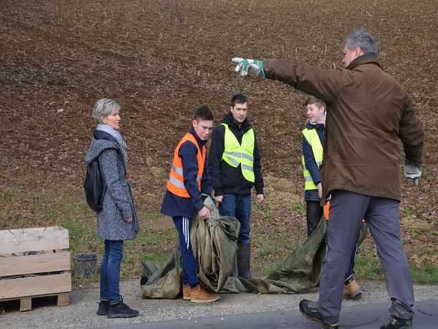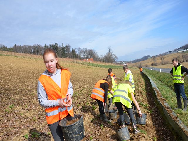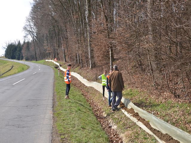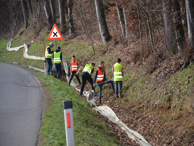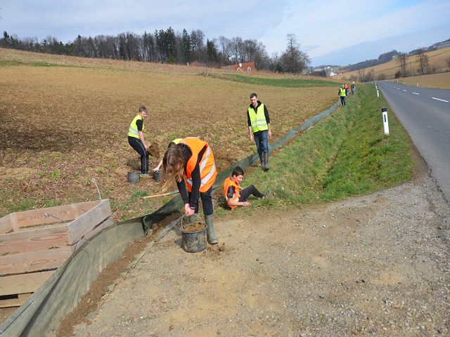Wieder einmal hat die NMS Gnas mit ihren Lehrkörpern einen Amphibienschutztag eingelegt und bei den Roth-Teichen in Obergnas zusammen mit Bernd Wieser einen Schutzzaun für die gefährdeten Tiere errichtet. Seit 1998 wird hier schon ein Schutzzaun jährlich aufgebaut und betreut. Bis zu 2000 Tiere wandern hier auf 200 Meter Straßenlänge. Das ist ein Rekord!