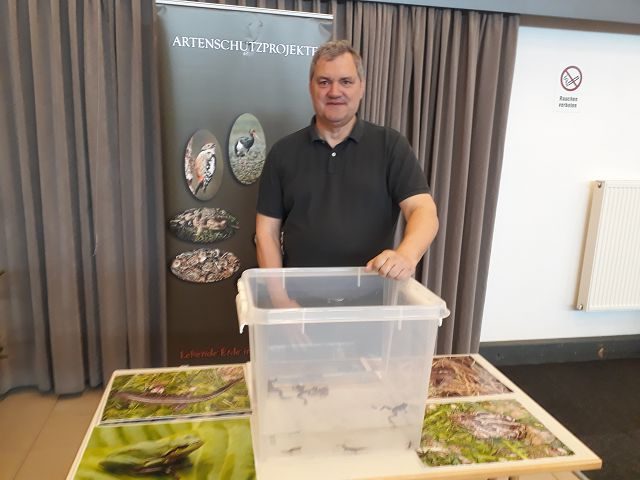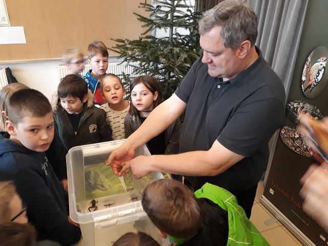 Bernd Wieser konnte auch heuer wieder im Rahmen des Bezirksjägertages mit zahlreichen Schulklassen die Artenschutz-Projekte im Bezirk vermitteln. Wie wichtig die Rolle der Insekten in der Natur ist und was diese sosehr bedroht? Warum die letzten Blauracken Österreichs noch rund um Straden fliegen? Was die Berg& Naturwacht und die Schüler zur Rettung von Fledermäusen und Amphibien beitragen? Wie und wann die Amphibien-Arten laichen? Wann und warum die Amphibien wandern? Diese und viele weiteren Fragen beantwortete der Biologe. Und zum Schluss gab es auch noch ein Anfassen von Kröte, Frosch und Molch.