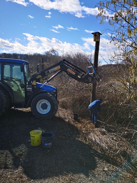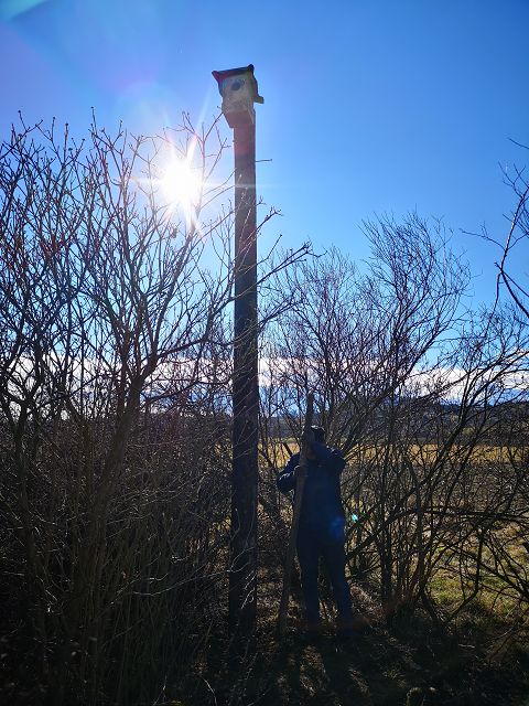 Seit Jahren entwickelt der Blaurackenverein einige naturnahe Biotope im Blaurackengebiet. Dazu zählt das Rückhaltebiotop in Neusetz, eine Naturhecke in Stainz oder das Ausgleichsbiotop für die Wilhelmsdorfer Kläranlage. Jetzt nachdem sich die Biotope einige Jahre lang gut entwickelt haben, sind einige Nisthilfen in die heckenförmigen Biotope eingebaut worden.