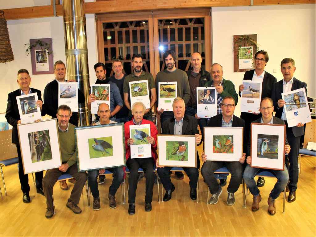 Der erste Blaurackenkalender ist da und wurde mit großem Publikum im Haus der Vulkane vorgestellt. 13 Seiten mit Fotografien von Oliver Gebhard, Andreas Tiefenbach, Alois Absenger, Michael Tiefenbach und Alois Bresnik wurden vom Maler Alois Bresnik als Vorlagen für Aquarelle genutzt. Der Künstler aus Pölten bei Klöch lebt inmitten einer Naturlandschaft und lies sich diesmal von Naturmotiven für seine Arbeit leiten. Die Originalbilder wurden von Stradnern Unternehemern und 2 Mitgliedsgemeinden des Blaurackenvereines gekauft und somit auch die Kosten für die Kalenderproduktion gedeckt. Der Reinerlös kommt den Artenschutzprojekten des Vereines LEiV zu Gute. Karl Lenz hat diese, großteils neuen Partner für den Verein geworben und viele von ihnen sind auch gekommen um ihre Bilder zu übernehmen. Die Anwesenheit und Dankesreden von LAbg. Franz Fartek und Bgm. Gerhard Konrad zeigen die Bedeutung der Tätigkeiten des Blaurackenvereines. Mag. Bernard Wieser konnte in seinem Vortrag über die abgebildeten Arten die Gefährdungsursachen einschränken und bittet die Anwesenden um Mithilfe in der Meinungsbildung. Schon jetzt sind große Schritte getan. Der Verein bewirtschaftet 300 Wiesen und ist der größte Bio Grünlandbetrieb in der Region.