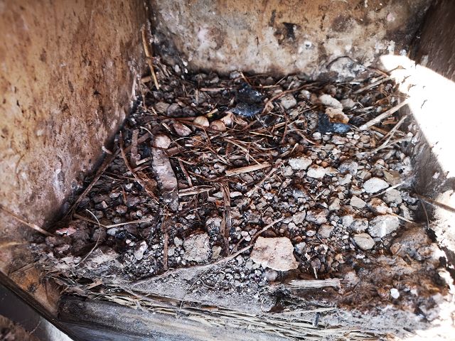 So schaut ein erfolgreich bebrüteter Nistkasten der Blauracken aus. Sogar Schneckenhäuser befinden sich im Nest