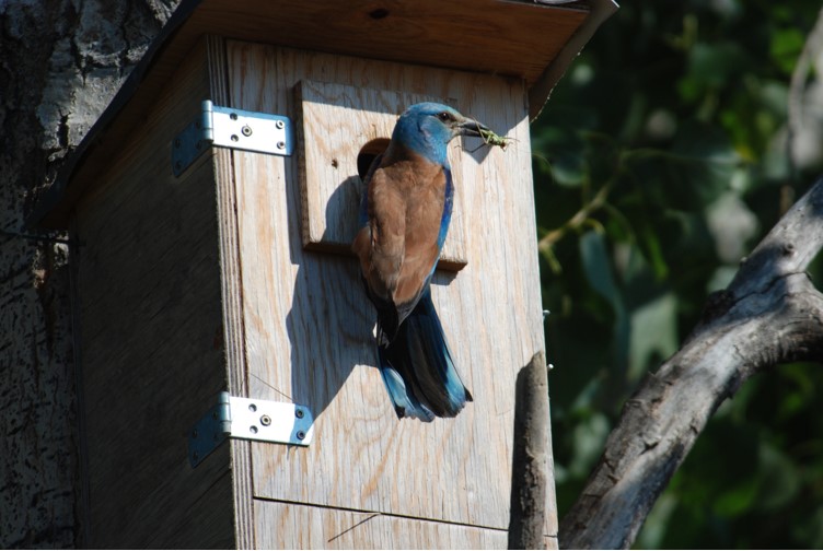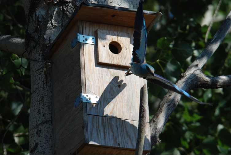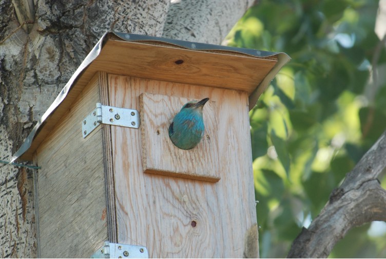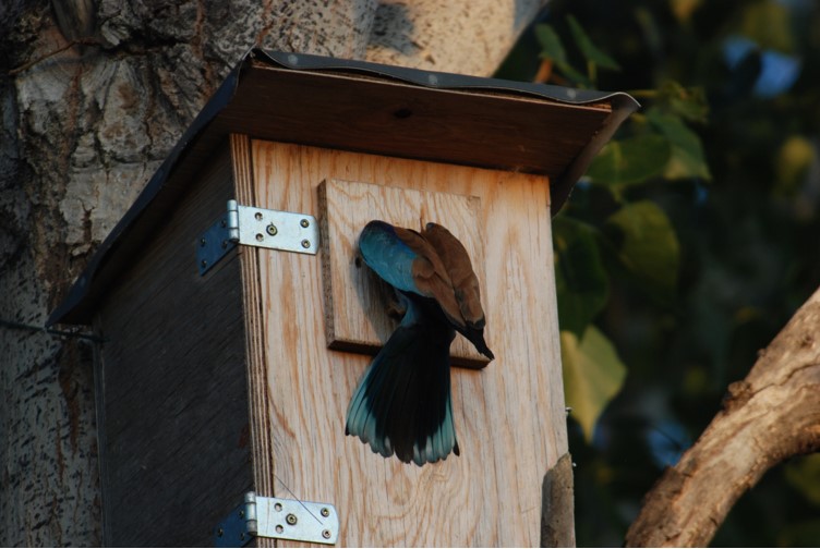 Das Einflugloch ist eng aber für Blauracke weit genug