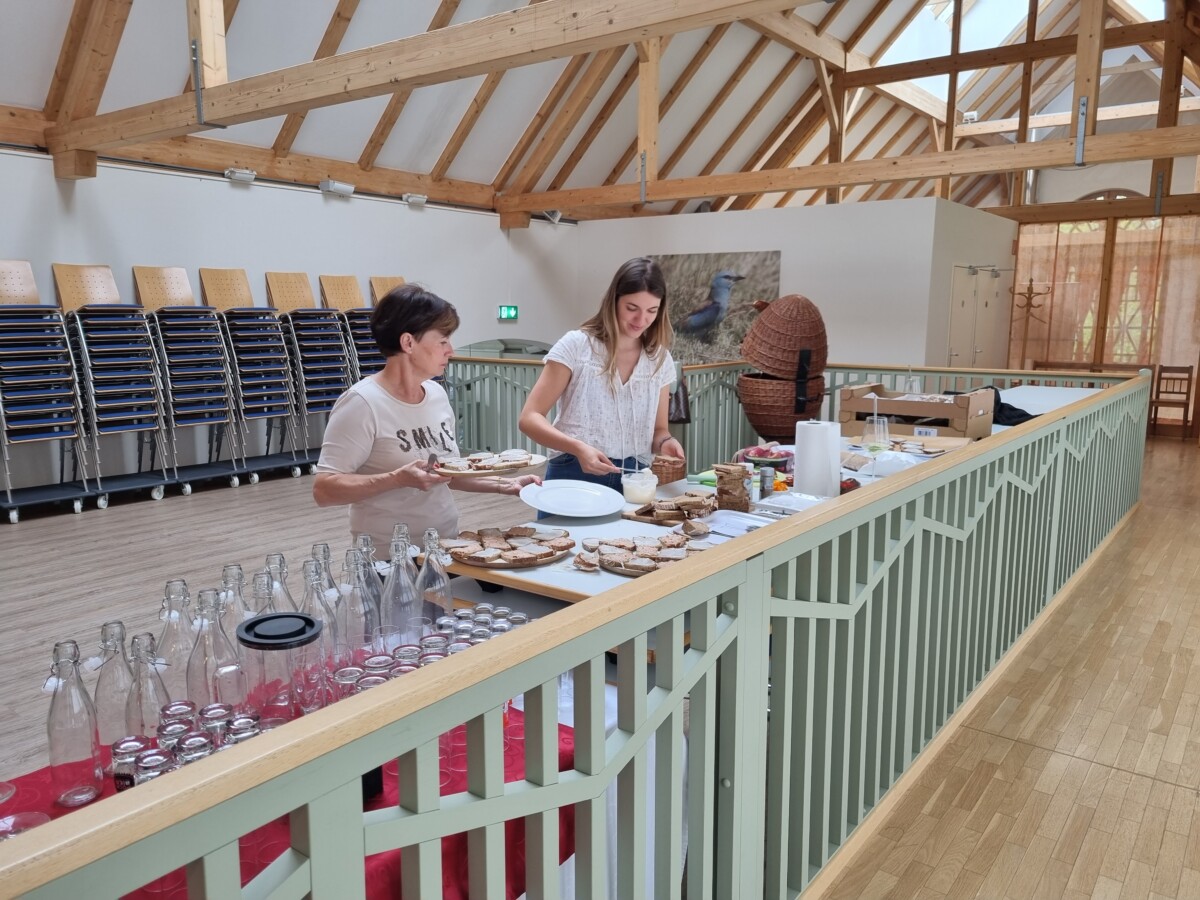 Dieser Tag wurde vom Verein LEiV auch zum Anlass für eine Mostverkostung aus Streuobstapfelsorten genommen. Bernhard Haas von Obst.Wein.Gut Haas aus Poppendorf hat in einer Kooperation mit dem Blaurackenverein ein wunderbares Getränk hergestellt, von dem auch er selbst in höchsten Tönen sprach. Die Etikette wurde von Isabella Wieser gestaltet. Cocco bezeichnet den Kernbeißer, einen Vogel, der in unserer Gegend lebt und mit einem kräftigen Schnabel auch einen Apfelkern zerbeißen könnte. Jedes Produkt von LEiV ziert eine Vogelart.