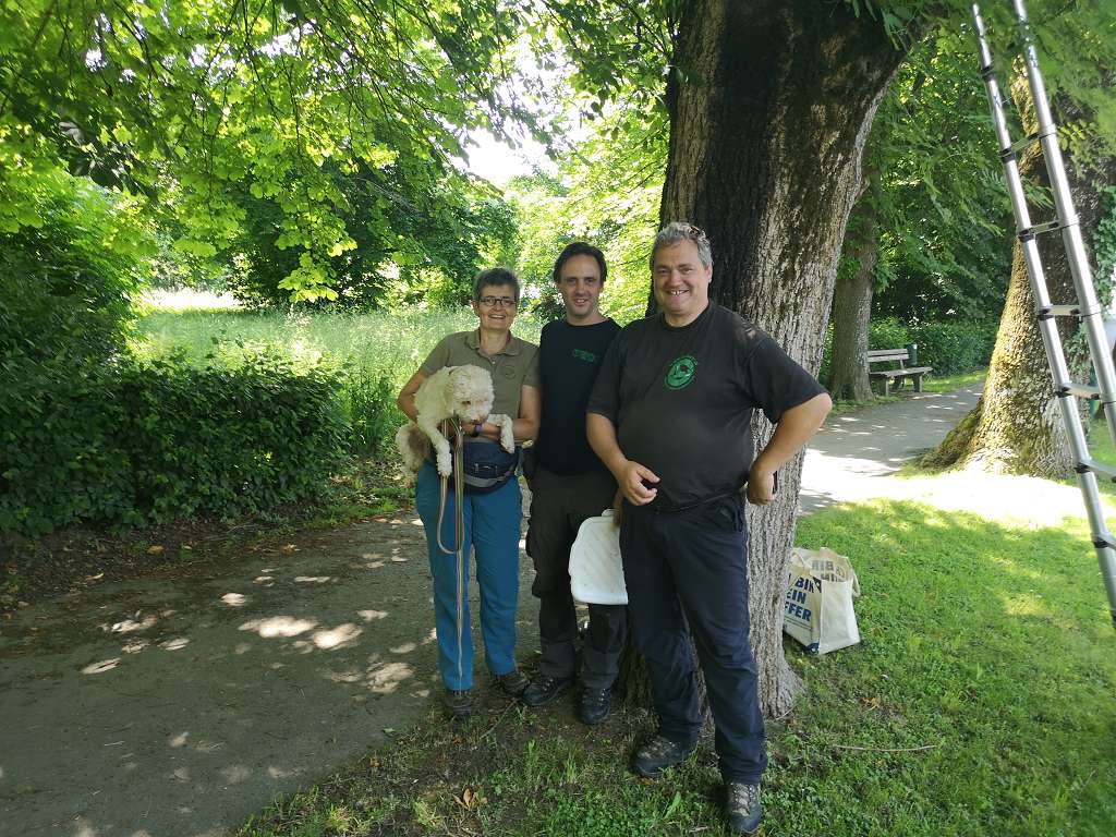 Das Eremiten-Team besuchte neulich die Kurparkanalge von Bad Gleichenberg. Die alten Bäume dort sind ein Mekka für Baumbewohner und so wurde acuh nach dem seltenen Juchtenkäfer – Osmoderma eremita gesucht. Mit einem Trüffelhund, der auch auf den Geruch dieses Käfers trainiert wurde holte man Probe um Probe aus den alten Bäumen. Selbst für Kurpark- und Gemeindegärtner Helmut Zotter war dies eine völlig neue Erfahrung. Mag. Thomas Friess und Gabi Sausengg bemühten sich sehr, wurden aber leider nicht fündig, was den Juchtenkäfer betraf. Der scheue auwaldbewohner hat es wohl nicht bis zur Wasserscheide geschafft. Anders im benachbarten Goricko, wo der Käfer über die Kopfweidenbestände die Lendava heraufkommt bis zur Österreichischen Grenze.