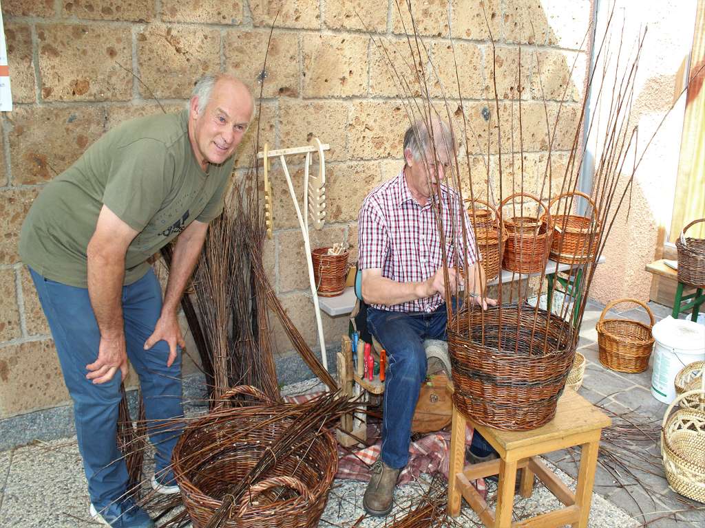 Unsere Korbflechter (Träger des Immateriellen Kulturerbes der UNESCO) haben sich wieder präsentiert. Die Wiedenflechter und die Strohkorbflechter waren in Aktion. Besondere Gäste aus Slowenien haben ihre Woazlin-Flechtereine aus den Lischen des Maiskolbens mitgebracht. Einen Kunststand mit Kohlezeichnungen gab es ebenso zu sehen, wie einen Schmied, der aus Abfallstoffen schöne Tier- und Pflanzenmotive zauberte.