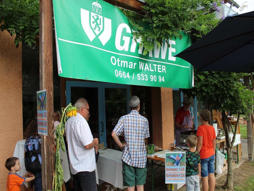 Über 40 Ehrenamtliche arbeiten beim Blaurackenfest, denn es gibt viel zu tun. Schon am frühen Morgen sorgten unsere internationalen Jugendlichen vom Grenzenlos-Projekt für die Dekoration des Festes mit Sonnenblumen. Die Stände mit den Biowürstel vom Bauernhof Krenn in Pretal, mit dem regionalen Bier von Georg Pock aus Pichla bei Brunnsee, mit dem PiWi-Weinen vom Kobatl aus Pichla bei Tieschen oder dem Aronja-Kracherln vom Herbert Gartner aus Paurach bei Feldbach und natürlich die Säfte, Moste und Schnäpse des Blaurackenvereines wurden von Beginn des Festes an belagert. In der Stainzer Stube gabs noch ein Buffet für den ganz großen Hunger und Kaffee.