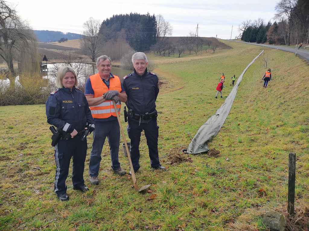 Die Schüler der NMS Gnas halfen bei der Errichtung des Amphibienschutzzaunes in Obergnas bei den Roth-Teichen. Jährlich wandern hier bis zu 2000 Amphibien. Mit Familie Roth wurde auch eine Verbesserung der Laichteiche besprochen. Die örtliche Polizei sorgte zusätzlich für den Schutz der arbeitenden Schüler. NMS-Lehrer Herbert Ferko betreute die Helfer.