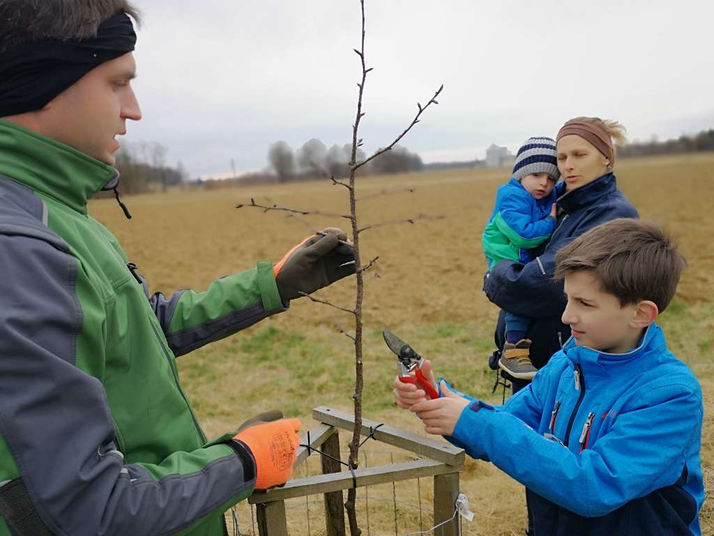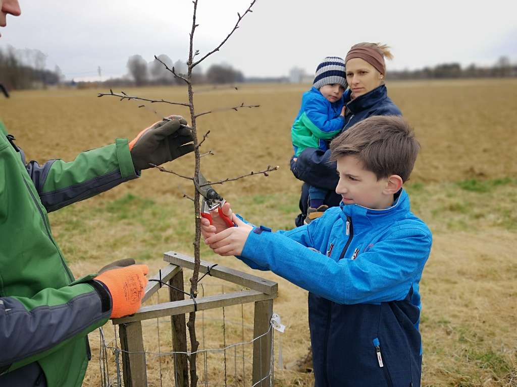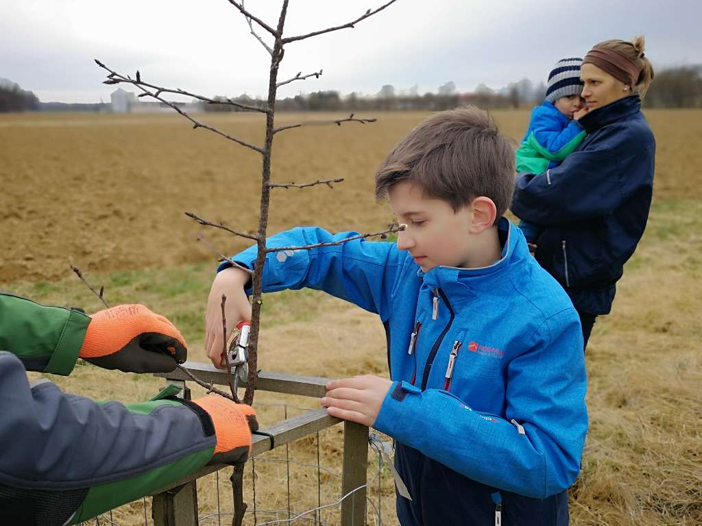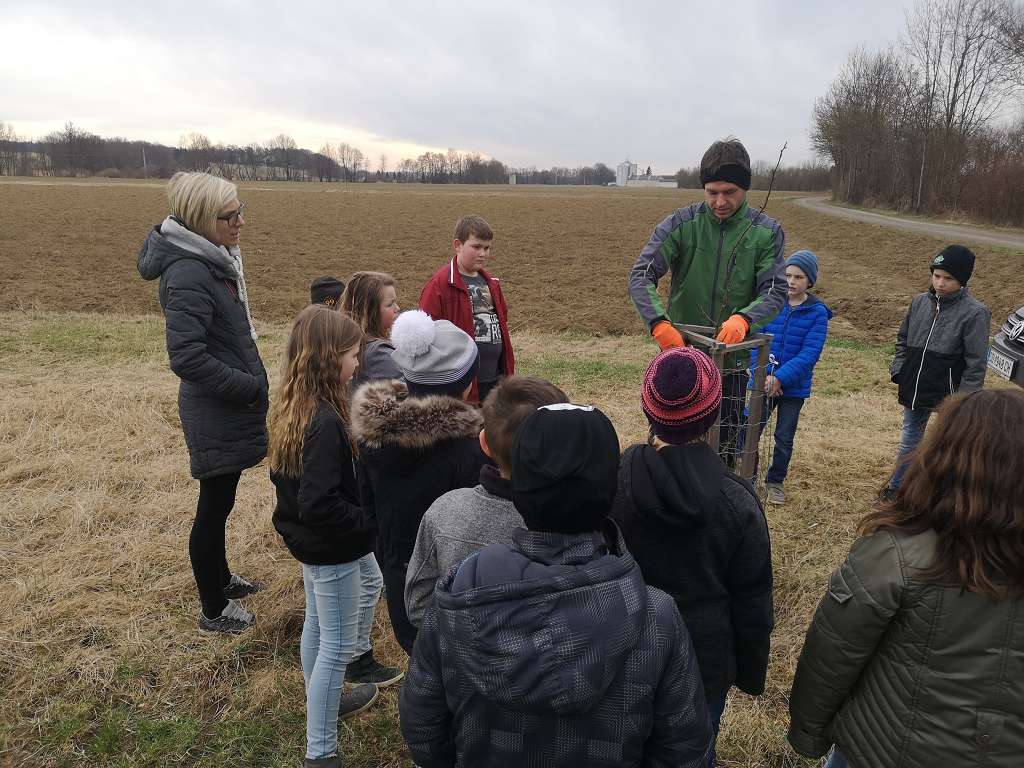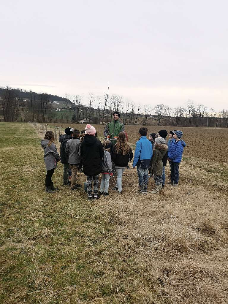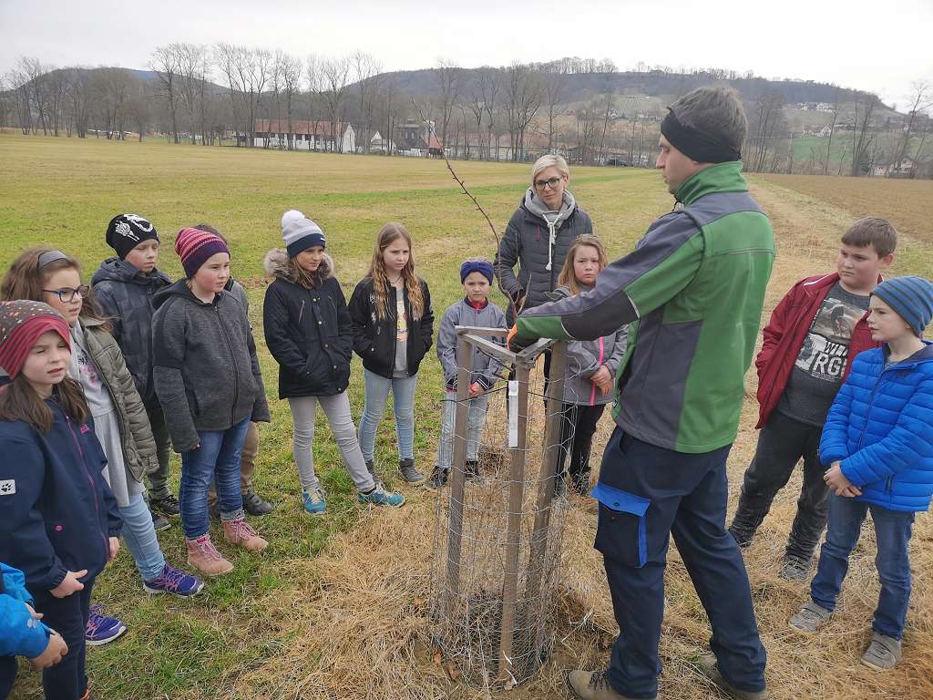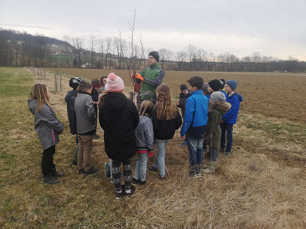 Im Vorjahr haben wir zusammen mit den Volksschülern aus Tieschen auf einer Ökofläche in Jörgen 17 Birnbäume gepflanzt. Der zweite Teil dieser Aktion war nun das Schneiden der Jungbäume. Zusammen mit Lehrerin Elisabeth Faulent kamen die Volksschüler zu Fuß angewandert und durften ihre Bäume nach Anleitung selbst schneiden. Baumwärter Stefan Tschiggerl erklärte die Schnittmaßnahmen und die Schüler haben sofort begriffen, worum es beim Baumschneiden geht. So nebenbei lernten sie auch noch, warum man Schutzmaßnahmen für die Bäume ergreifen muss und wer alles von den Bäumen profitiert. Ein Dankeschön auch an Martina Niederl, die die Aktion koordinierte.