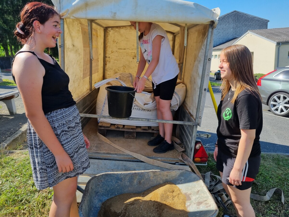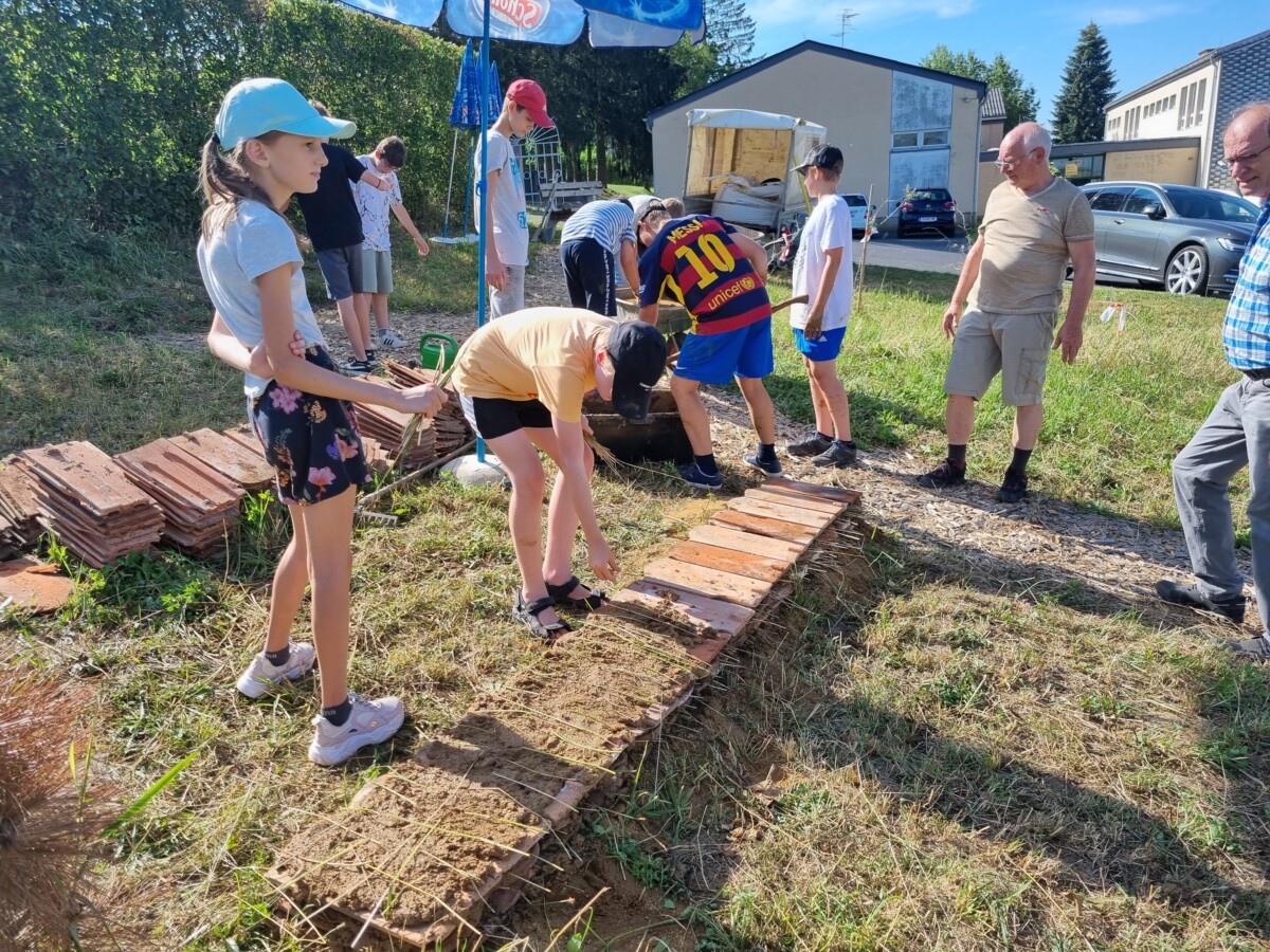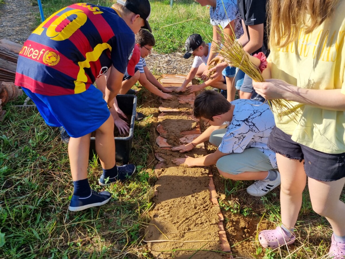 Zu den Hecken, Waldbereichen und Streuobstbäumen, zählt ein Honigbienenschaukasten, welcher von Altbürgermeister Alfred Niederl betreut wird und nun kam auch noch eine Nisthilfe für Mauerbienen aus alten Dachziegeln und Lehm (von der Fa. ProLehm gesponsert) dazu, welche die drei Klassen mit Mag. Bernd Wieser vom Verein Lebende Erde im Vulkanland errichteten.