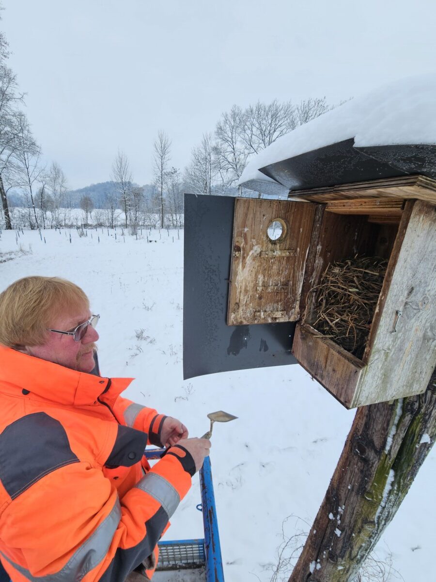 So werden insgesamt ca. 250 Nistkästen für verschiedene Vogelarten (Blauracke, Zwergohreule, Wiedehopf, Steinkauz und Kleinvögel) betreut, gewartet und ergänzt. Genauso ist die Erhaltung von Ansitzmöglichkeiten im Gelände obligat. In der freien Landschaft fehlen ja die Bäume und deshalb wurden schon seit den 90er Jahren mehr als 1200 Ansitzarten und Leitungen errichtet.