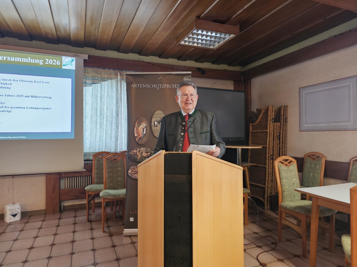 Obmann Karl Lenz eröffnete die Jahreshauptversammlung und gedachte der verstorbenen Mitglieder und ihrer von uns geschätzten Beiträge zum Naturschutz. Eine Zusammenstellung über die Aktionen im abgelaufenen Jahr 2025 gab GF Mag. Bernard Wieser einem Publikum von über 45 Zuhörern im GH Pock-Puxamühle in Hof bei Straden. Er bedankt sich zuvor bei seiner Partnerin und Sekretärin Isabella Wieser, die viele der Veranstaltungen mit organisiert und vorbereitet und der gute Geist im Büro des Vereines in Stainz bei Straden ist.