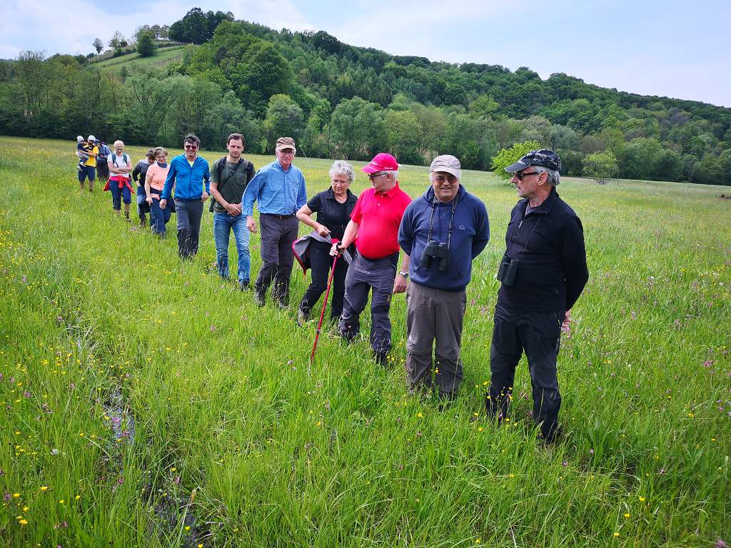 Ein würdiger Abschluss führte uns ins Wiesental nach Hofstätten. Dort bewirtschaftet unser Verein die eine oder andere Wiesenfläche und auch der Orchideenreichtum auf diesen kalkhältigen Böden ist besonders hoch. Über 600 Kräuter und 100 Gräser wachsen auf unseren Weisen. Derzeit kann man über die Hälfte beobachten, der Rest kommt dann im Hochsommer heraus.