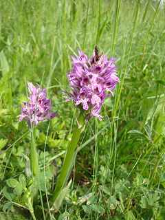 Zur Wiesentour, im Speziellen zur Orchideenblüte im Steirischen Vulkanland waren der Alpenverein Gleisdorf mit Mag. Bernard Wieser verabredet. Verschiedene Wiesengesellschaften, neu geschaffene Biotope, Pflegemaßnahmen, die die Artenvielfalt garantieren, das waren die Themen, die in Wort und Person verdeutlicht wurden. In Neusetz gab es einen Besuch beim Ersatzbiotop für das neue Straßenstück auf den Rosenberg. Amphibienzäune sollen die Jungfrösche vor dem Straßentod retten und sie in Richtung Waldfläche umleiten. Ein Artenschutzprojekt mit dem Hundsfisch findet hier statt. Die beiden flachen Wasserflächen eignen sich sehr gut dafür. Für größere Fische ist das Wasser zu seicht.