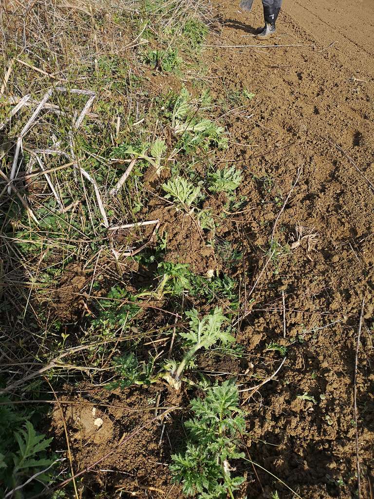 Riesenbärenklau durch Gewässerbauliche Maßnahmen in die Ackerflächen verschleppt
