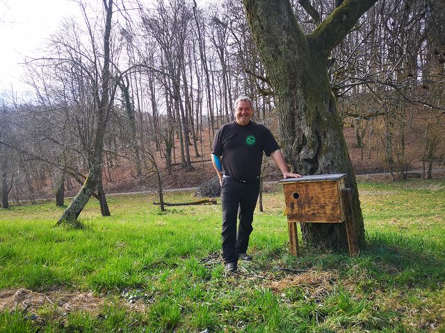 Alois begutachtet die Nistkästen von Franz Knittelfelder